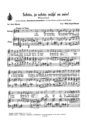Schön ja schön müßt es sein - Noten für Klavier und Gesang aus: Bezaubernde Schwindlerin (Operette)