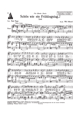 Schön wie ein Frühlingstag - Noten für Klavier und Gesang