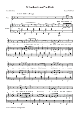 Schreib mir mal ne Karte - Noten für Klavier und Gesang