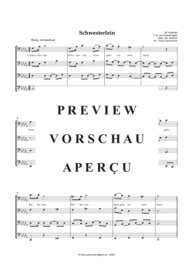 Schwesterlein (Blechbläser Quartett) - Noten für Tiefe Lage Johannes Brahms (Zaunschirm)