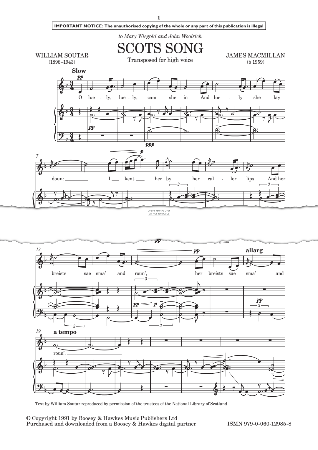 Scots Song - Noten für Gesang, Klavier James MacMillan