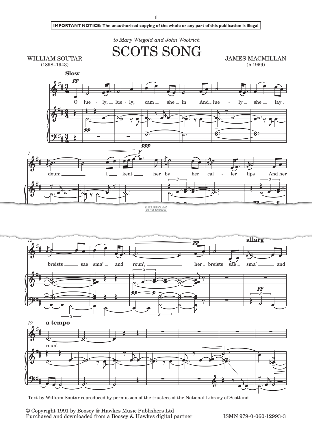 Scots Song - Noten für Gesang, Klavier James MacMillan