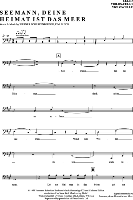 Seemann, Deine Heimat Ist Das Meer - Noten für Violoncello Freddy Quinn