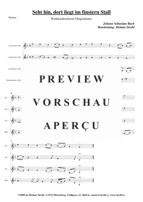 Seht hin dort liegt im finstern Stall - Noten für Klarinettenquartett Johann Sebastian Bach