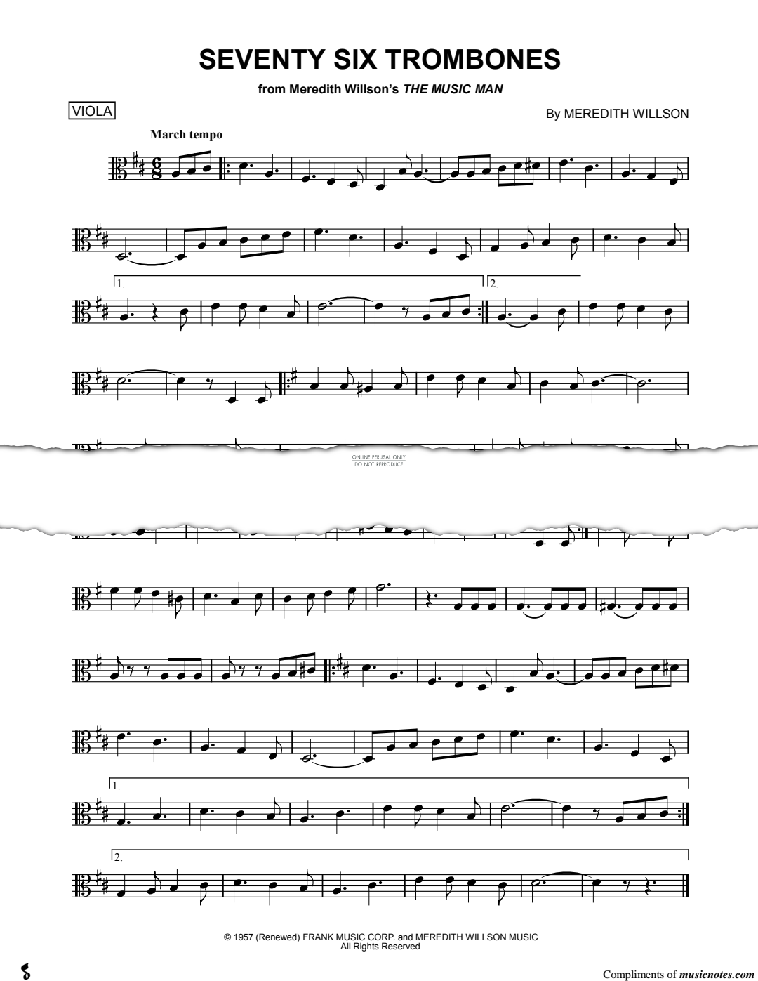 Seventy Six Trombones - Noten für Viola Meredith Willson