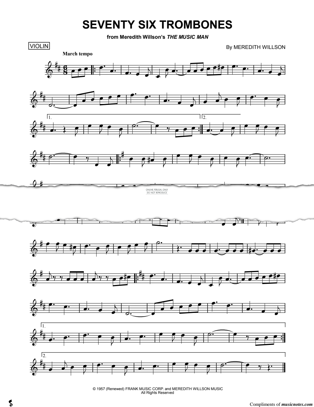 Seventy Six Trombones - Noten für Violine Meredith Willson