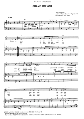 Shame on You - Noten für Klavier und Gesang Fats Domino