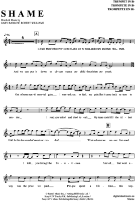 Shame - Noten für Trompete in B Robbie Williams / Gary Barlow