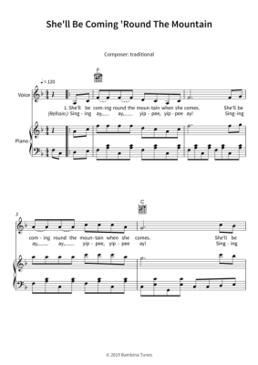 She´ll Be Coming ´Round The Mountain - Noten für Gesang + Klavier, Gitarre Lars Opfermann