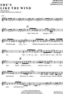 She´s like the wind - Noten für Trompete in B Patrick Swayze (aus: Dirty Dancing)