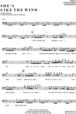 She´s like the wind - Noten für Violon-Cello Patrick Swayze (aus: Dirty Dancing)