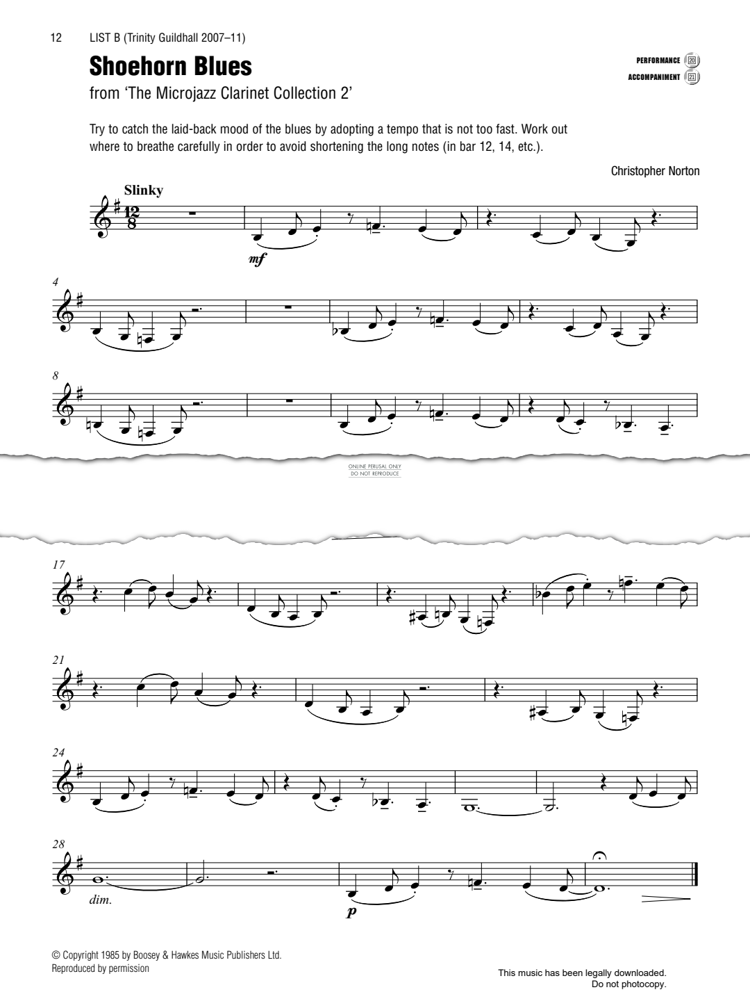 Shoehorn Blues - Noten für Klarinette, Klavier Christopher Norton