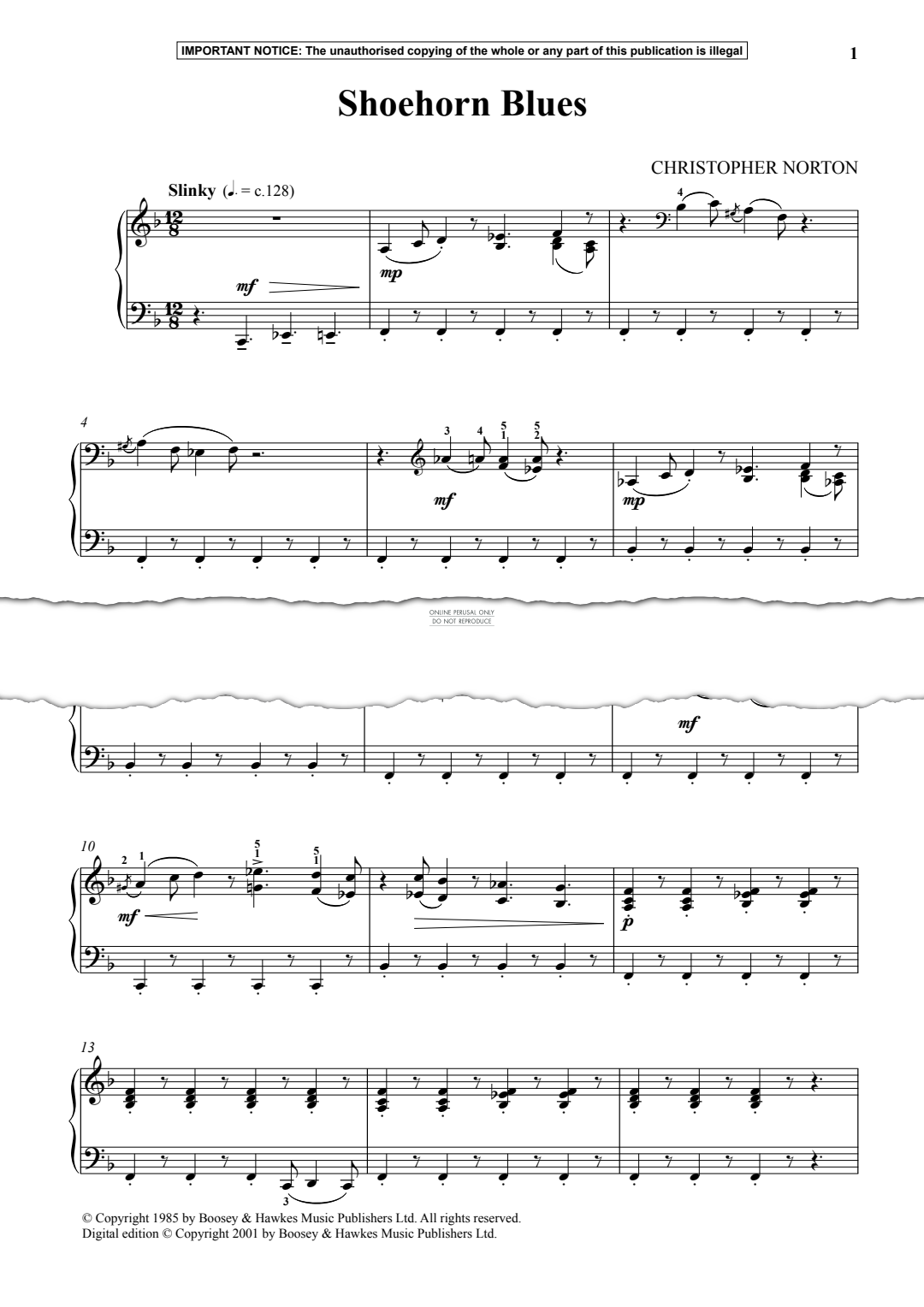 Shoehorn Blues - Noten für Klavier Christopher Norton