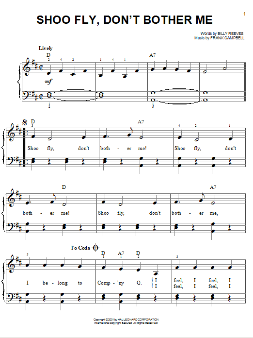 Shoo Fly, Don't Bother Me (Easy Piano)