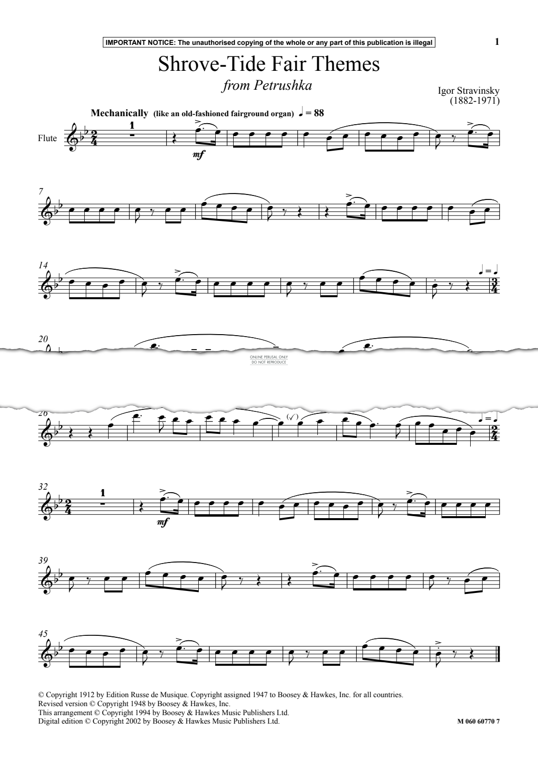 Shrove-Tide Fair Themes from 'Petrushka' - Noten für Flöte Igor Stravinsky
