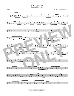 Siciliano - Noten für Viola Johann Sebastian Bach