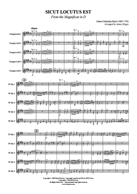 Sicut Locutis Est - Noten für 5x Trompeten J. S. Bach (aus: Magnificat in D)