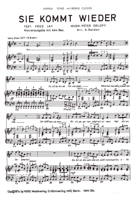 Sie kommt wieder - Noten für Klavier und Gesang Bernd Clüver