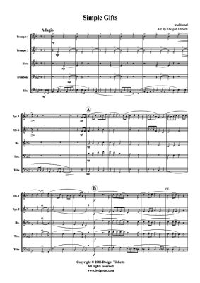Simple Gifts - Noten für Blechbläserquintett Traditional (arr. Tibbetts)