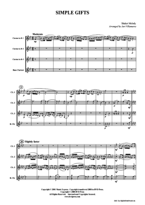 Simple Gifts - Noten für 3xKLAR in B, Bass-KLAR Traditional (arr. Villanueva)
