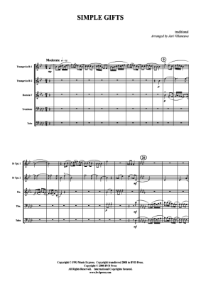 Simple Gifts - Noten für Blechbläserquintett Traditional (arr. Villanueva)