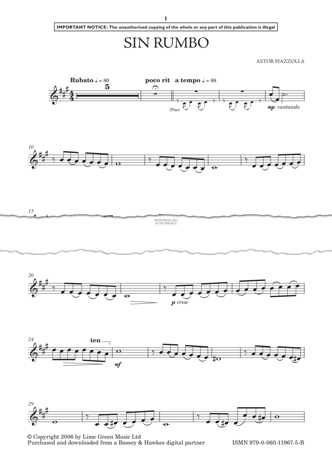Sin Rumbo - Noten für Klavier, Violine Astor Piazzolla
