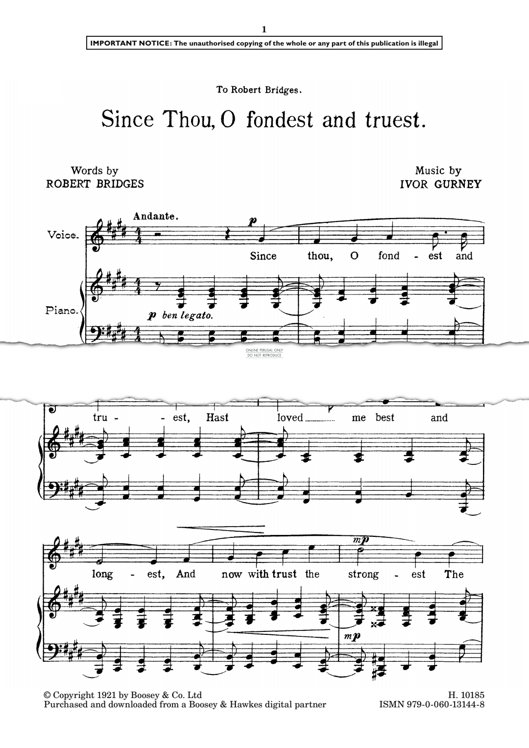 Since thou, O fondest and truest - Noten für Gesang, Klavier Ivor Gurney