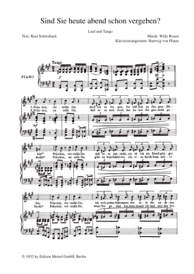 Sind Sie heute abend schon vergeben - Noten für Klavier und Gesang Lied und Tango