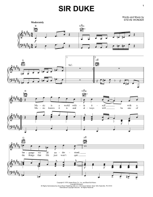 Sir Duke - Noten für Gesang, Gitarre, Klavier Stevie Wonder
