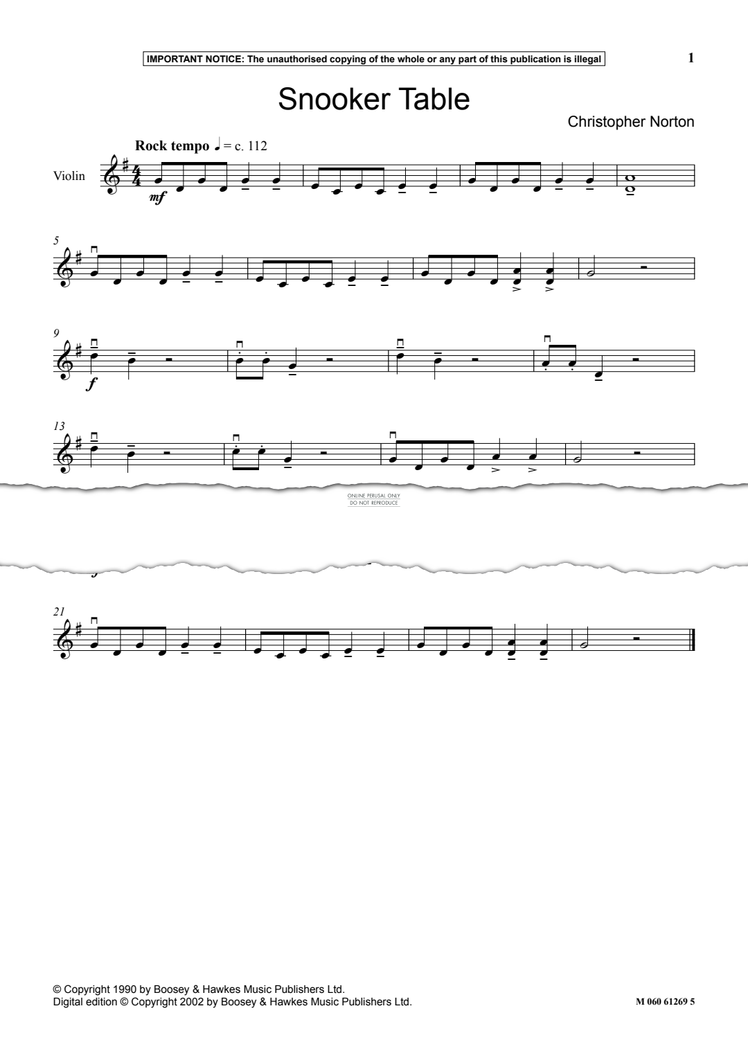 Snooker Table - Noten für Klavier, Violine Christopher Norton