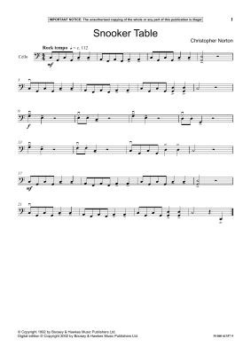 Snooker Table - Noten für Klavier, Violoncello Christopher Norton