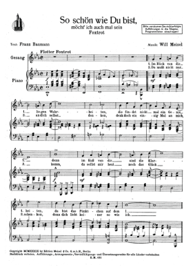 So schön wie Du bist, möcht ich auch einmal sein - Noten für Klavier und Gesang Foxtrott