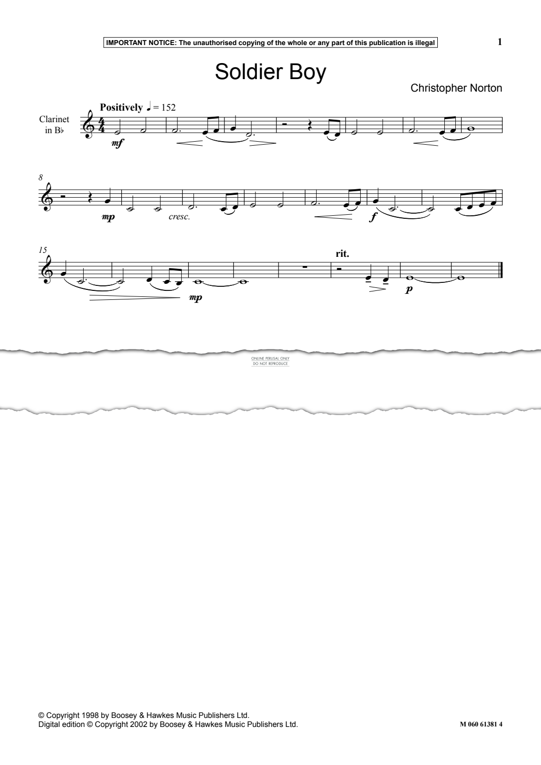 Soldier Boy - Noten für Klarinette, Klavier Christopher Norton