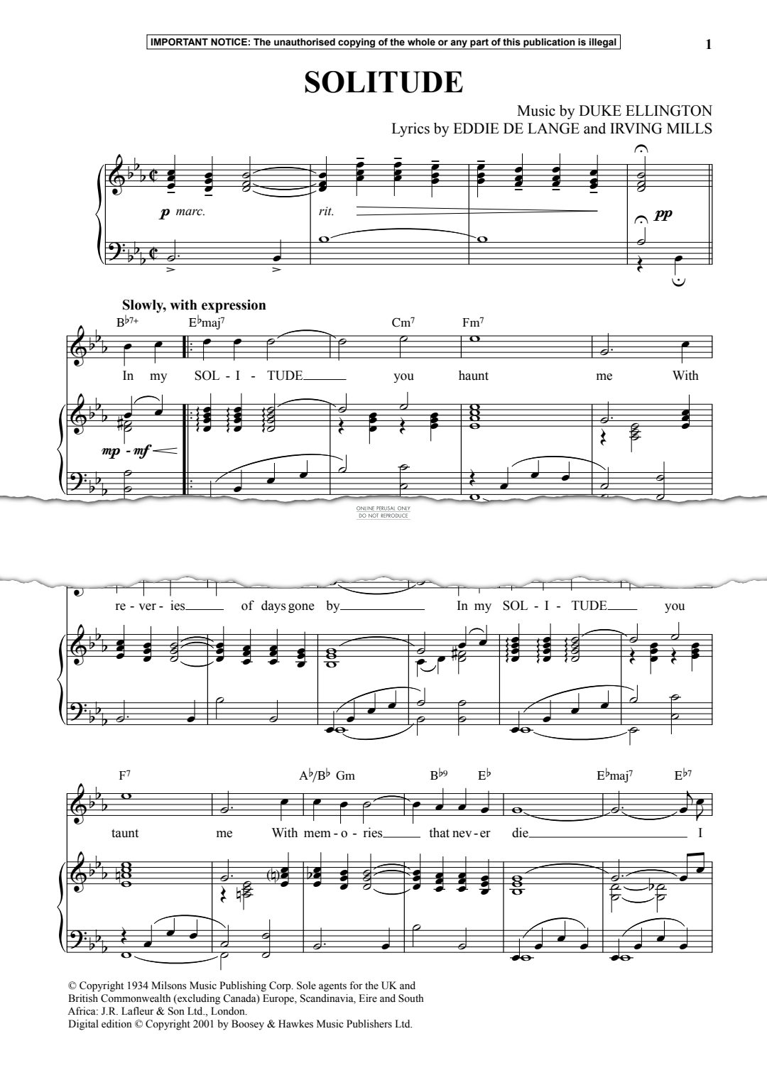 Solitude - Noten für Klavier Duke Ellington