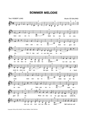 Sommer Melodie - Noten für Gesang +Akkorde 1978
