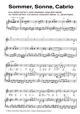 Sommer, Sonne, Cabrio - Noten für Klavier und Gesang G. G. Anderson