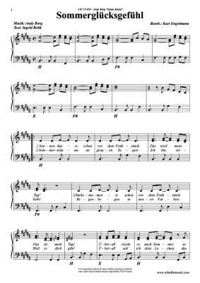 Sommerglücksgefühl - Noten für Klavier und Gesang Andy Borg