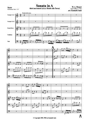 Sonata in A - Noten fĂŒr BlechblĂ€serquintett W. A. Mozart (3.Satz Rondo alla turca)