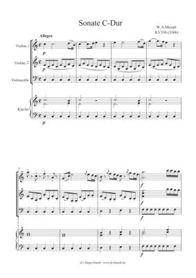 Sonate C-Dur KV336 (336b) - Noten für 2x Violine, Violoncello + Klavier Wolfgang Amadeus Mozart