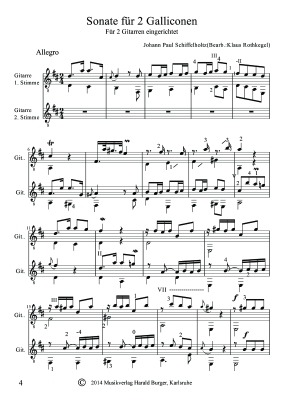 Sonate D Dur für zwei Galliconen - Noten für Duo für 2 Gitarren bearbeitet Johann Paul Schiffelholtz