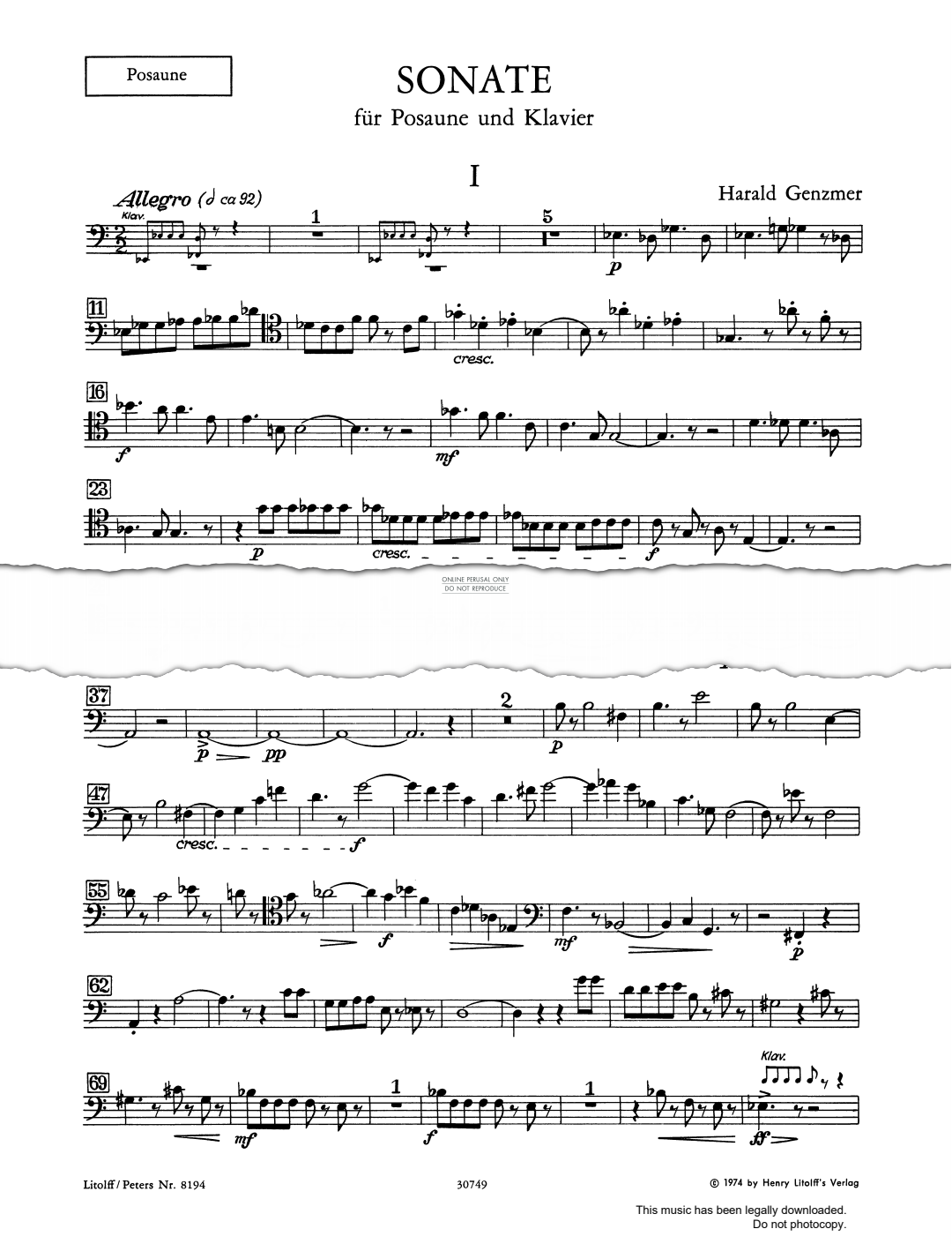 Sonate für Posaune und Klavier - Noten für Klavier, Posaune Harald Genzmer
