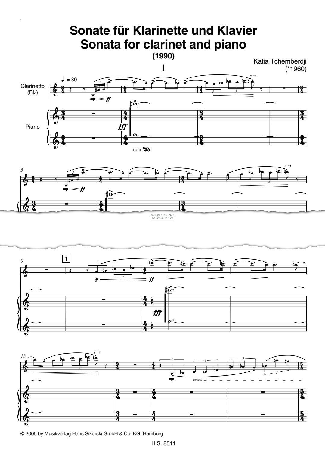 Sonate - Noten für Klarinette, Klavier Katia Tchemberdji