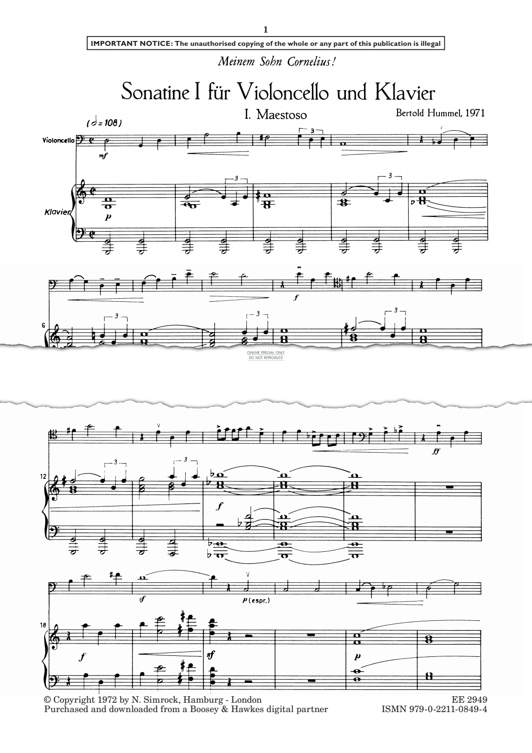 Sonatina No. 1, Op. 35c - Noten für Klavier, Violoncello Bertold Hummel