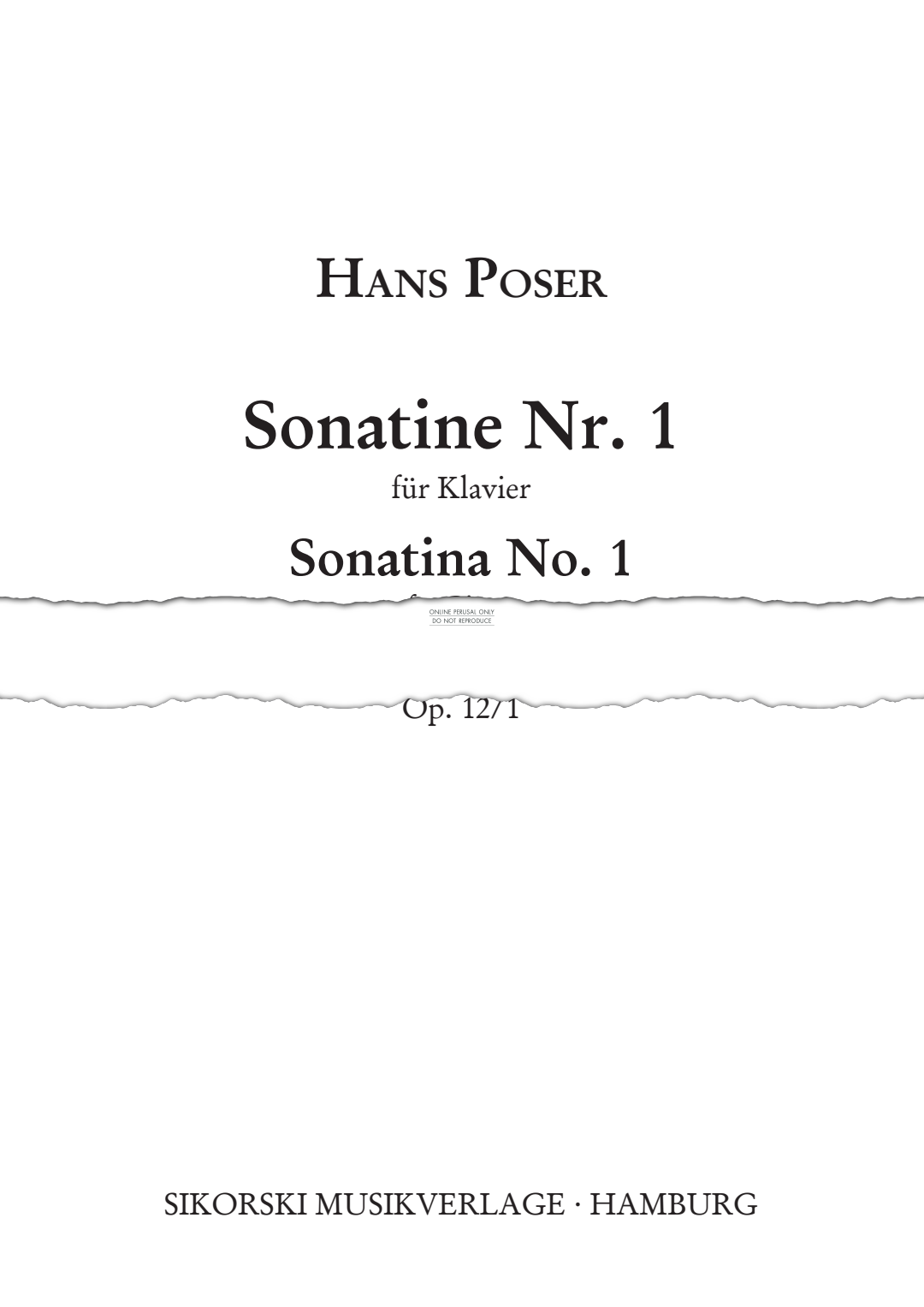 Sonatina No. 1 - Noten für Klavier Hans Poser