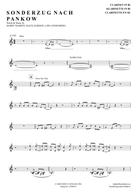 Sonderzug Nach Pankow - Noten für Klarinette in B Udo Lindenberg