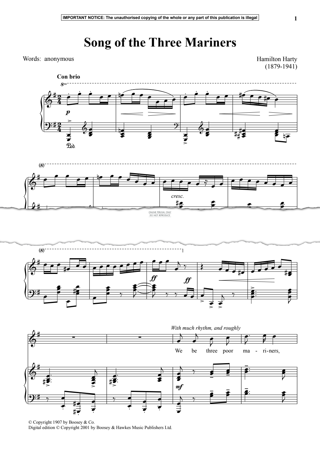 Song Of The Three Mariners - Noten für Gesang, Klavier Hamilton Harty