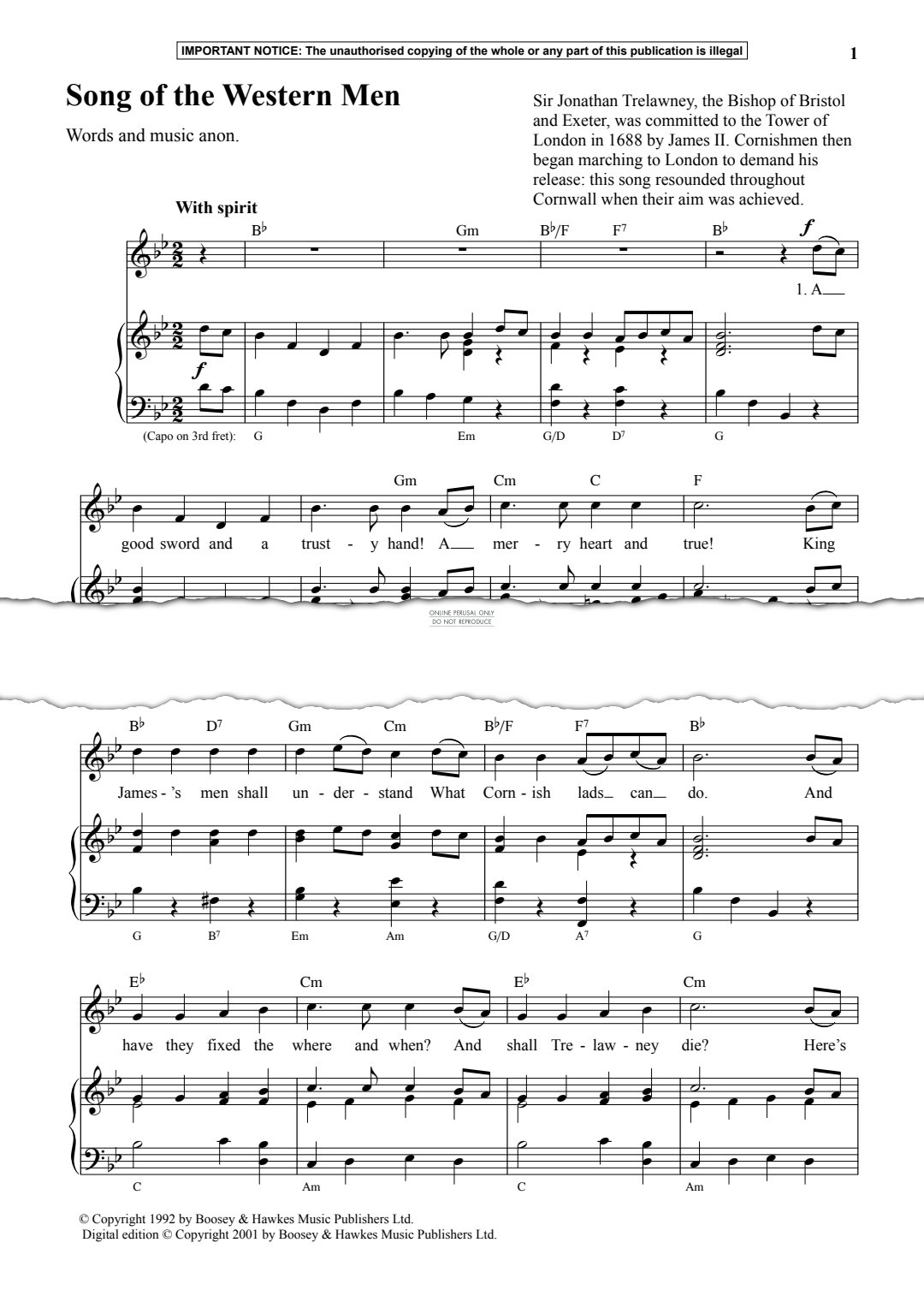 Song of the Western Men - Noten für Gesang, Klavier Anon