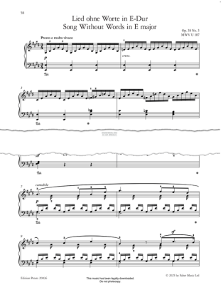 Song Without Words in E Major Op.38, No.3 - Noten für Klavier Felix Mendelssohn