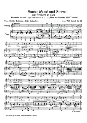 Sonne, Mond und Sterne sind verliebt in dich - Noten für Klavier und Gesang aus: Was bin ich ohne dich (Film)
