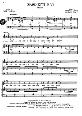 Spaghetti Rag - Noten für Klavier und Gesang Popular Standard